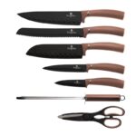 تفاصيل: سكين الشيف 20 سم سكين خبز 20 سم سكين سانتوكو 17.5 سم سكينة 12.5 سم سكين التقشير 9 سم مقص براية حامل أكريليك 360 درجة